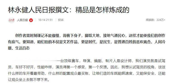 他在《人民日报》上发表的《精品是怎样炼成的》一文中,精准指出了当下国产影视作品存在的问题。