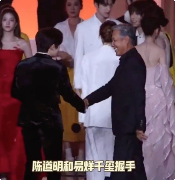 在这一夜所有的热搜之中,真正“掀翻社交媒体”的不是颁奖本身,而是结束合影的一幕,70岁的陈道明,会心一笑、主动走近、走向易烊千玺,伸手握住他的手。
